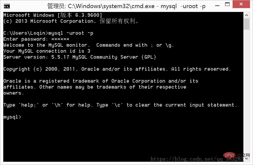mysql -uroot -p /*如果刚安装好MySQL,root是没有密码的*/