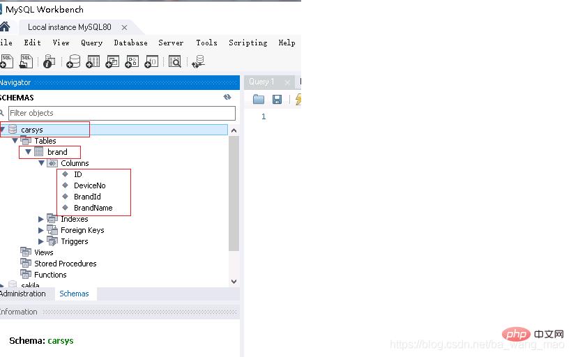 从下图可以观察到Carsys数据库有一个Brand表,有4个字段,分别为ID,DeviceNo,BrandId,BrandName。
