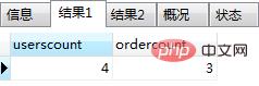 select userscount,ordercount; -- 返回用户表中的数量、订单表中的数量