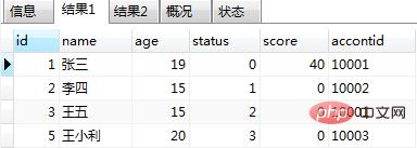 insert into users(id,name,age,status,score,accontid)