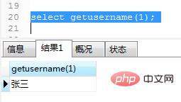 4.函数调用使用select getusername()。