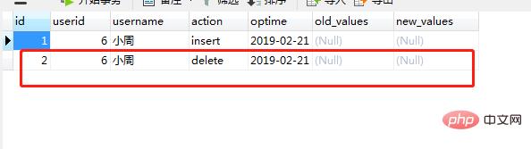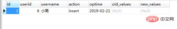 values(6,'小周',23,1,'60','10001'); 执行成功后,打开oplog表,可以看到oplog表中插入了一条记录如图(22)