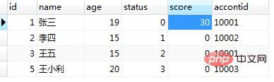 users表中,根据userid获取status值,如果status为1,则修改score为10;如果status为2,则修改为20,如果status3,则修改为30;否则修改为40。