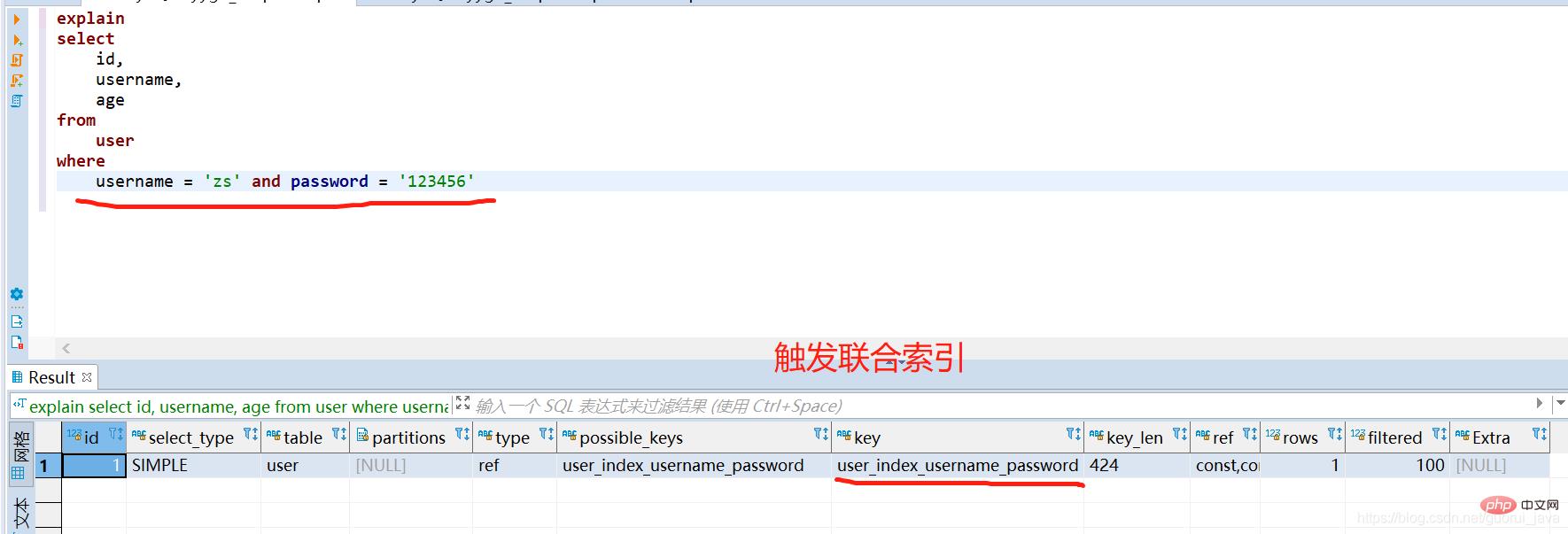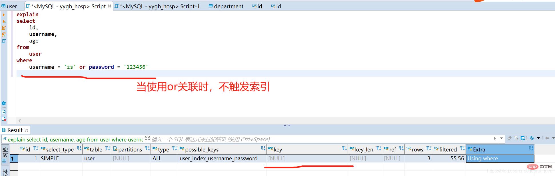 (2)使用联合索引的全部索引键,但是用or连接的,不可触发联合索引