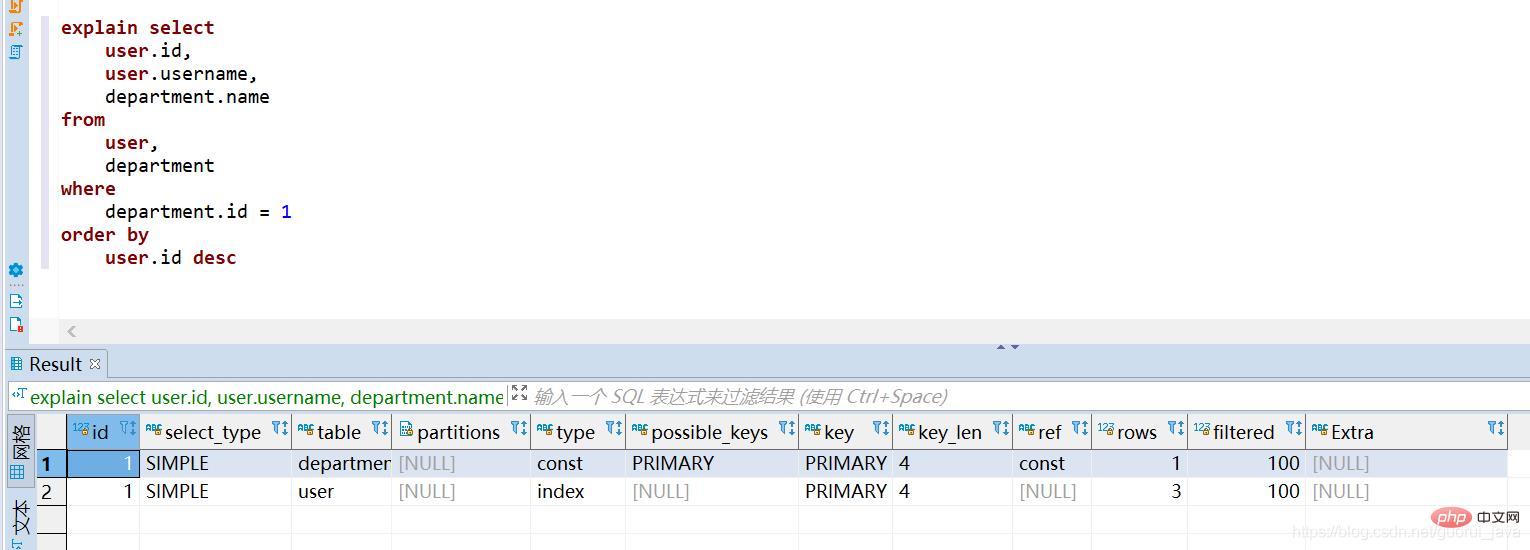 Using filesort:MySQL需要额外的一次传递,以找出如何按排序顺序检索行。通过根据联接类型浏览所有行并为所有匹配WHERE子句的行保存排序关键字和行的指针来完成排序。然后关键字被排序,并按排序顺序检索行。