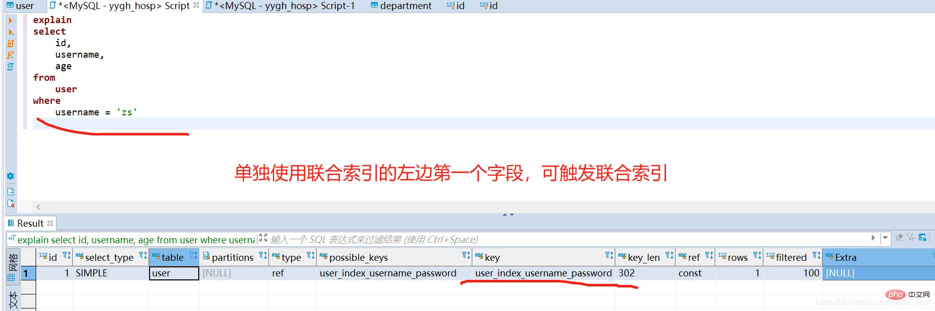 (3)单独使用联合索引的左边第一个字段时,可触发联合索引