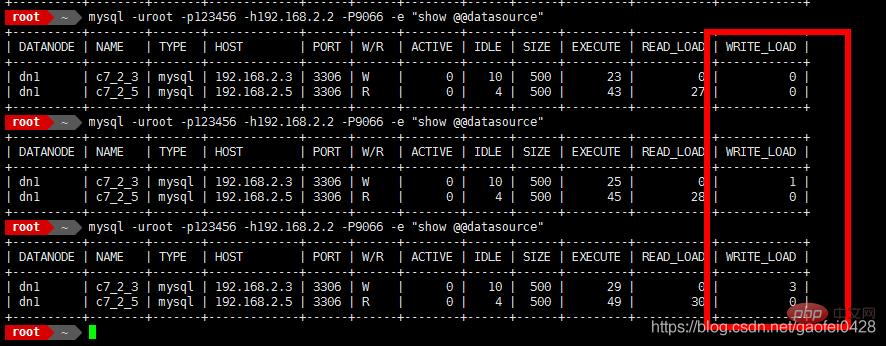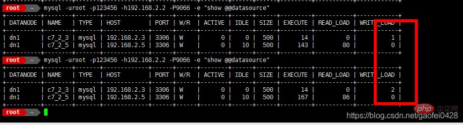 - mysql -uroot -p123456 -h192.168.2.2 -P9066 -e "show @@datasource"