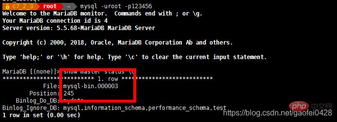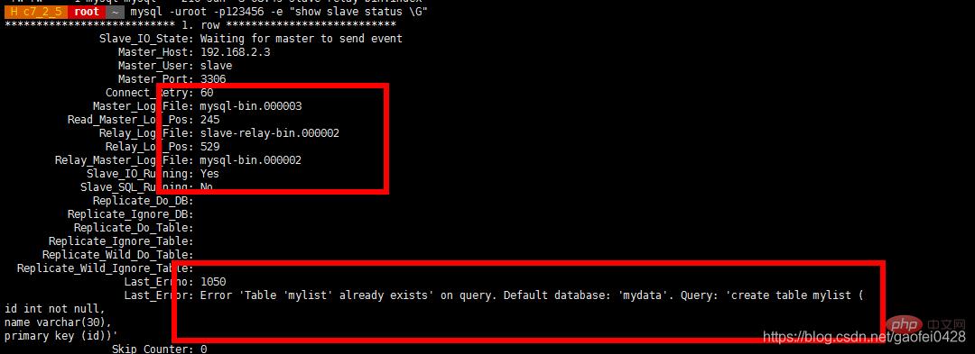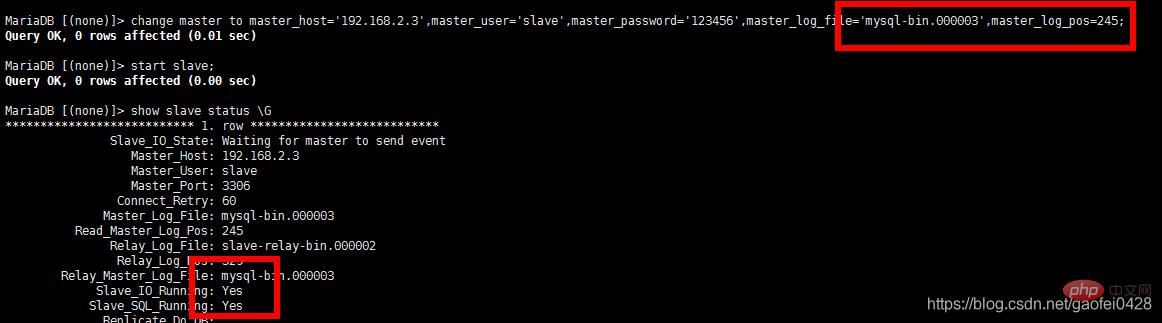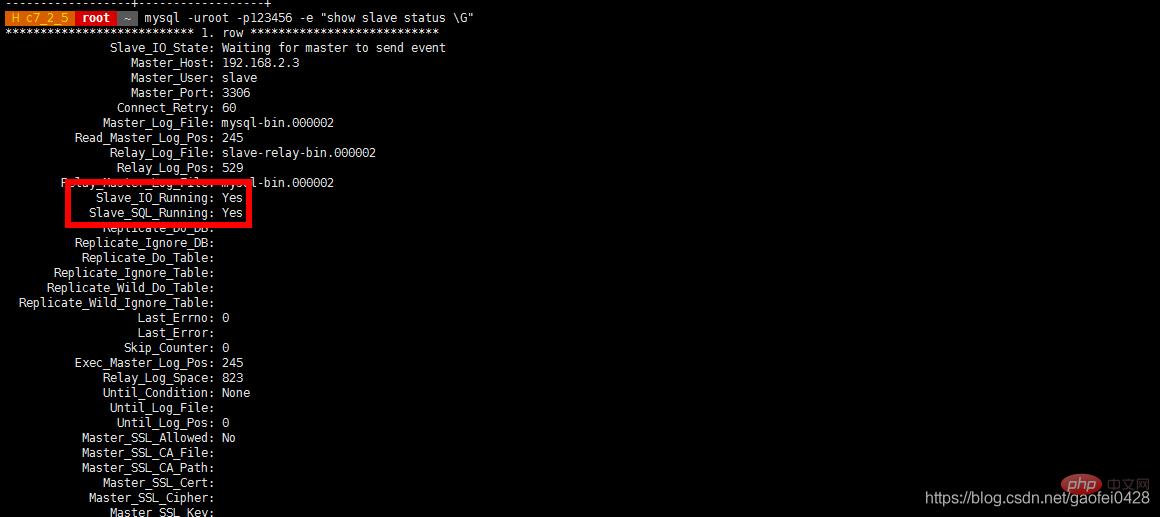 - mysql -uroot -p123456 -e "change master to master_host='192.168.2.3',master_user='slave',master_password='123456',master_log_file='mysql-bin.000002',master_log_pos=245;"
