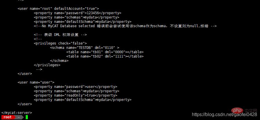 mycat 的用户账号和授权信息是在 conf/server.xml 文件中配置