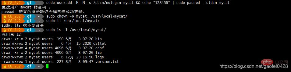 - sudo useradd -M -N -s /sbin/nologin mycat && echo "123456" | sudo passwd --stdin mycat