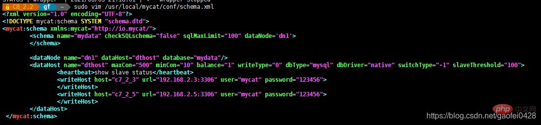 - \cp /usr/local/mycat/conf/schema.xml{,.bak}