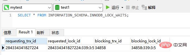 4.验证下,我们查看当前是否存在事务在等待锁: