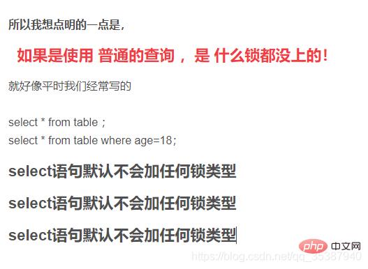 如果是使用 普通的查询 ,是 什么锁都没上的!