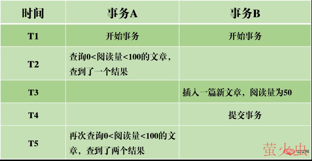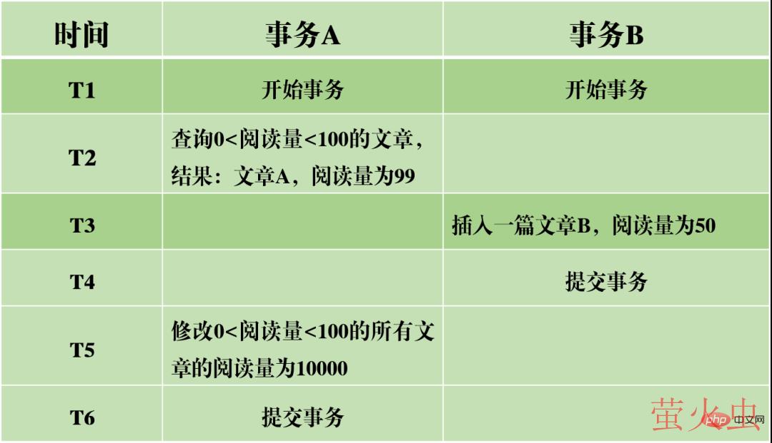 以上图为例,当对0<阅读量<100的文章进行查询时,先查到了一个结果,后来查询到了两个结果。这表明同一个事务的查询结果数不一,行数不一致。这样的问题使得在根据某些条件对数据筛选的时候,前后筛选结果不具有可靠性。