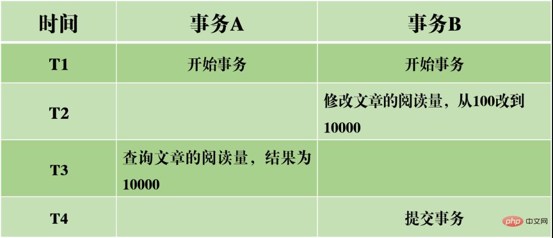 以上图为例,事务A在读取文章的阅读量时,读取到了事务B为提交的数据。如果事务B最后没有顺利提交,导致事务回滚,那么实际上阅读量并没有修改成功,而事务A却是读到的修改后的值,显然不合情理。