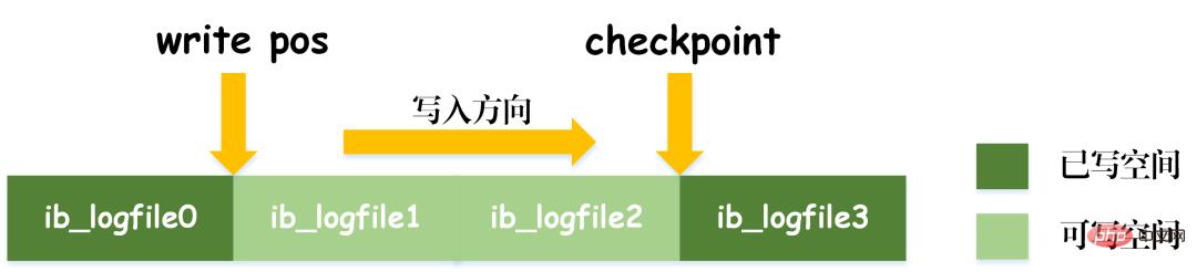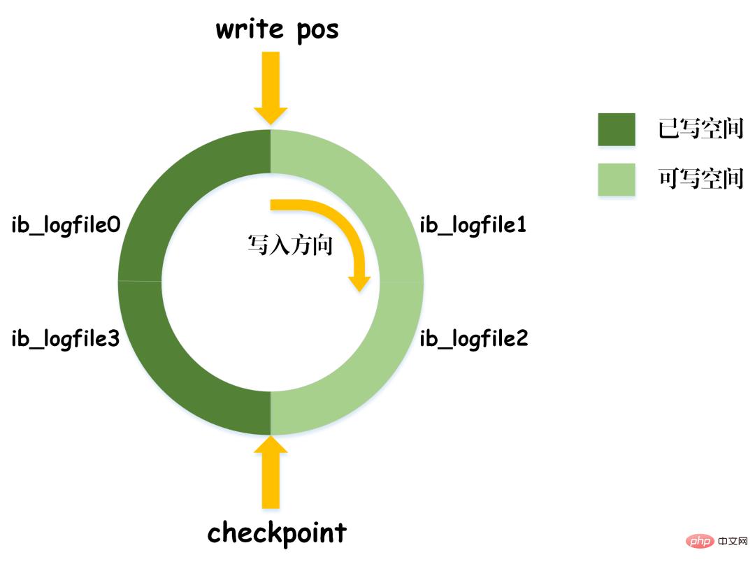 当write_pos标志到了日志结尾时,会从结尾跳至日志头部进行重新循环写入。所以redo log的逻辑结构并不是线性的,而是可看作一个圆周运动。write_pos与checkpoint中间的空间可用于写入新数据,写入和擦除都是往后推移,循环往复的。