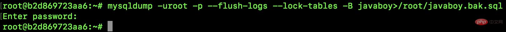 mysqldump -uroot -p --flush-logs --lock-tables -B javaboy>/root/javaboy.bak.sql