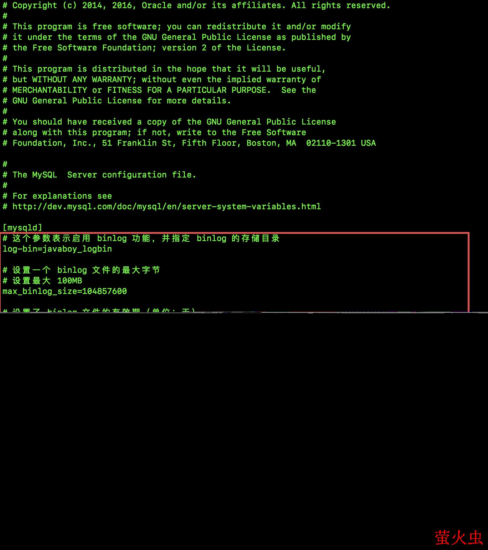 server-id=1各项配置的含义松哥已经在注视中说明了。截图如下:
