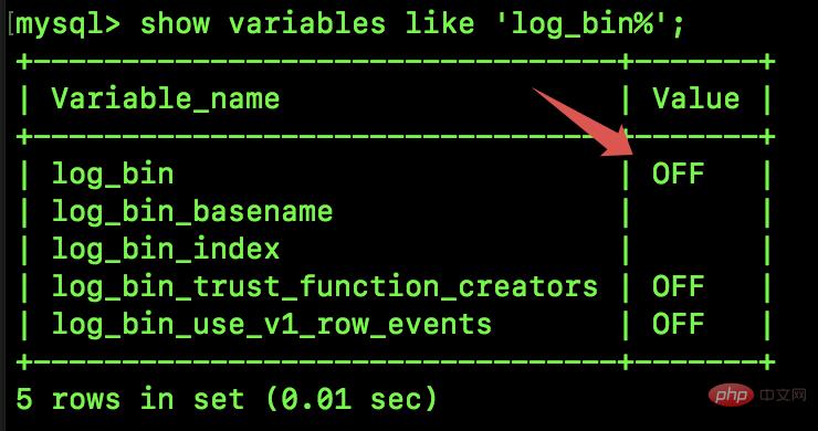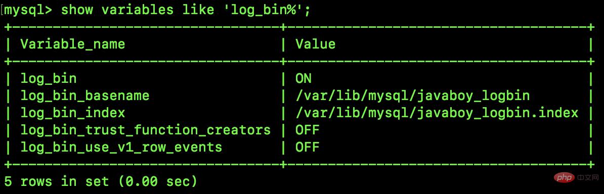 首先我们在 docker 中安装好 MySQL,然后进入到容器中,通过如下命令可以查看 binlog 是否开启: