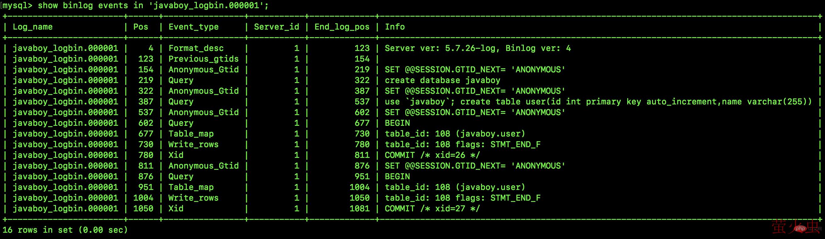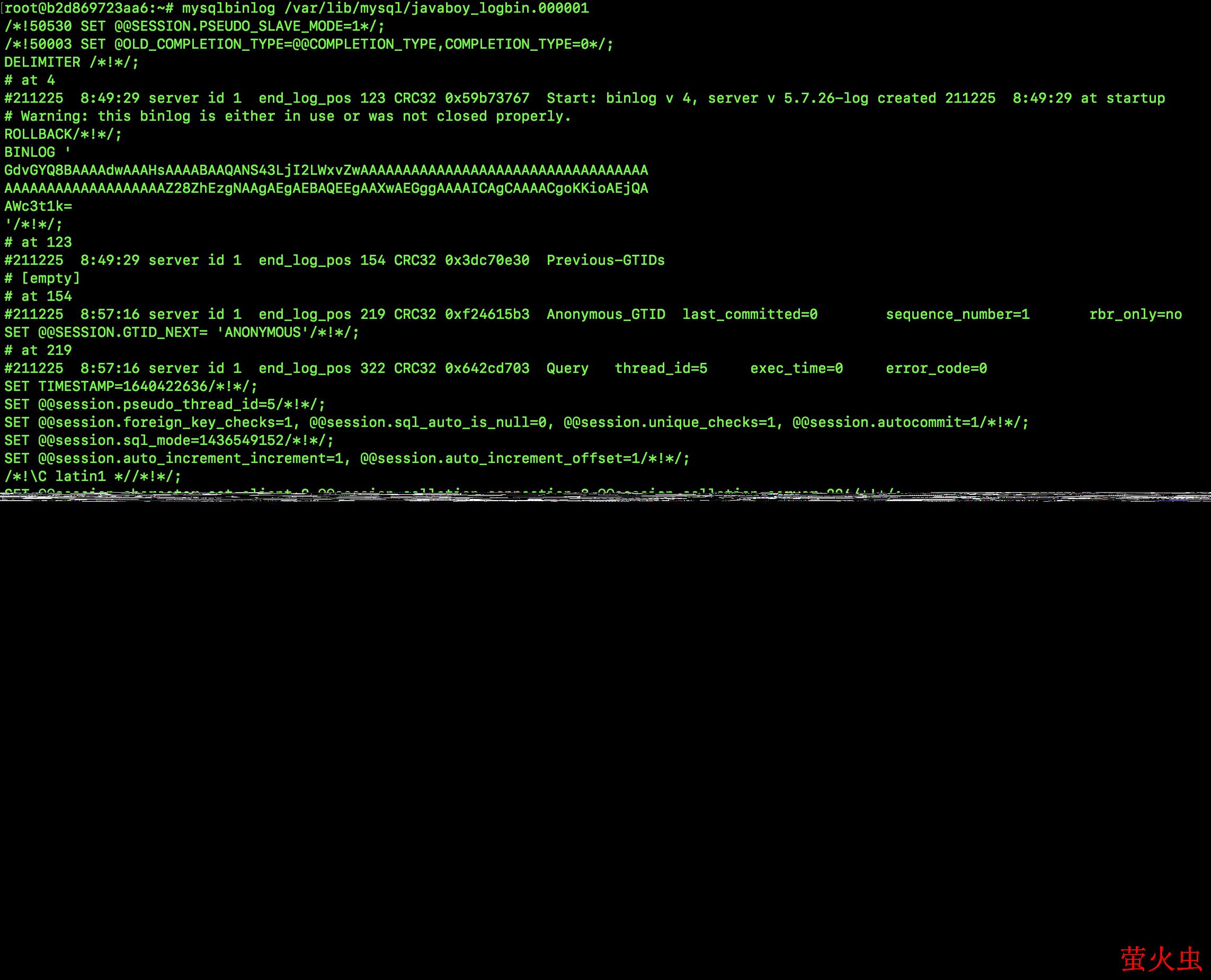 show binlog events in 'javaboy_logbin.000002';我这里生成的该文件比较长,我截取其中一部分: