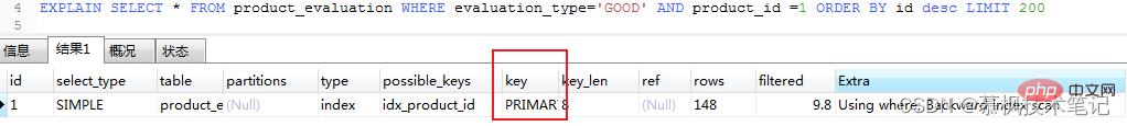 SELECT * FROM product_evaluation force index(idx_product_id)WHERE product_id =1 and evaluation_type='GOOD' ORDER BY id desc LIMIT 200总结