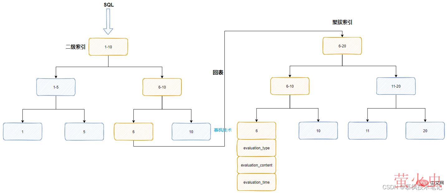 我们所建立的idx_evaluation_type实际上是一个二级索引(叶子节点是主键id),对于数千万一张的大表来说,实际上这个二级索引也是非常大的,而且这个字段本身的值就三个,变化不大。因此Mysql的优化器在分析这个SQL的时候发现,如果按照SQL中的索引来获取数据后再根据where条件进行筛选,筛选后的数据还需要回表到聚簇索引中获取实际的数据。