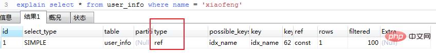 当使用字段进行常量等值查询时ref此处为const,当查询条件中使用了表达式或者函数则ref显示为func,则其他的显示为null。