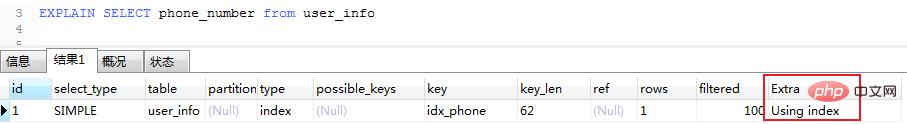 在进行数据查询的时候,数据库使用了覆盖索引,就是查询的列被索引覆盖,使用到覆盖索引查询速度会非常快。不是使用select * ,而是使用select phone_number,就会用到覆盖索引。