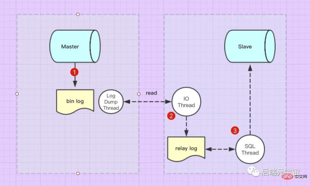 bin-log中。当Slave连接到Master的后,Master机器会为Slave开启binlog dump线程,该线程会去读取bin-log日志。 - Slave连接到Master后,Slave库有一个