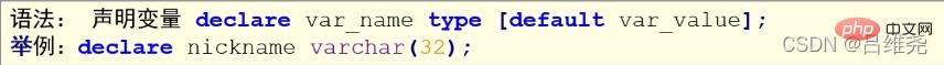 declare var_name01 varchar(20) default 'aaa'; -- 声明/定义变量