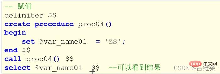 set var_naem01 = 'zhangsan'; -- 给变量赋值