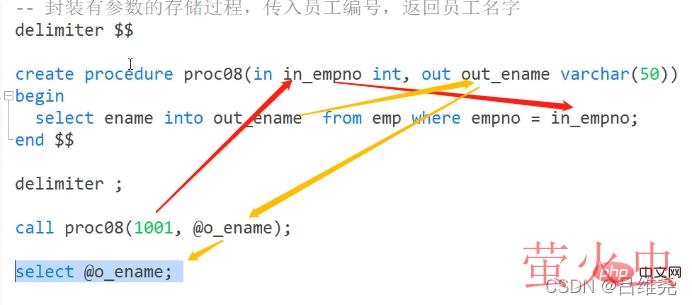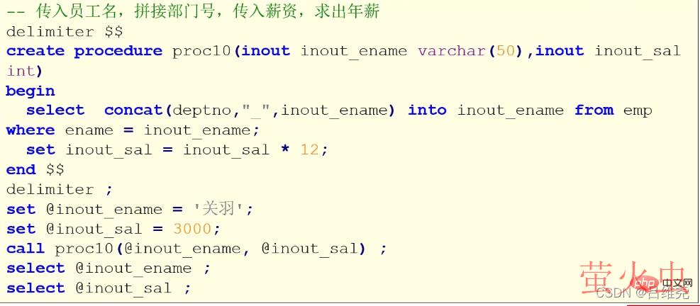 select sal into var_sal from emp where ename=in_eanme; -- 将值赋给局部变量