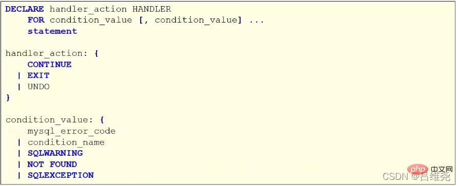 MySQL存储过程也提供了对异常处理的功能:通过定义HANDLER来完成异常声明的实现
