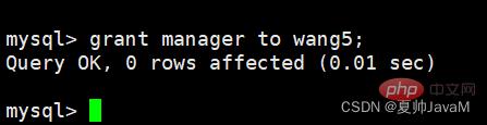 赋予wang5角色manager 注意这个是通过root用户实现的