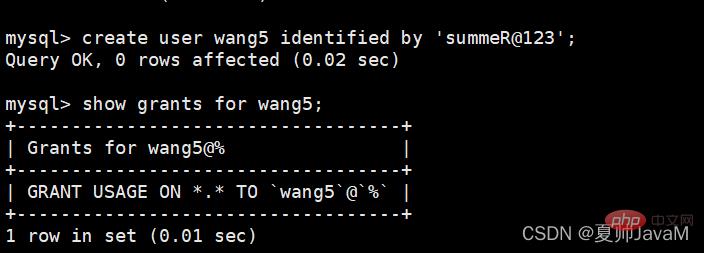 例子:创建一个用户叫wang5 然后赋予角色manager,操作如下