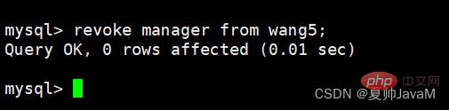REVOKE role FROM user;比如撤销 wang5的manager角色,通过root用户