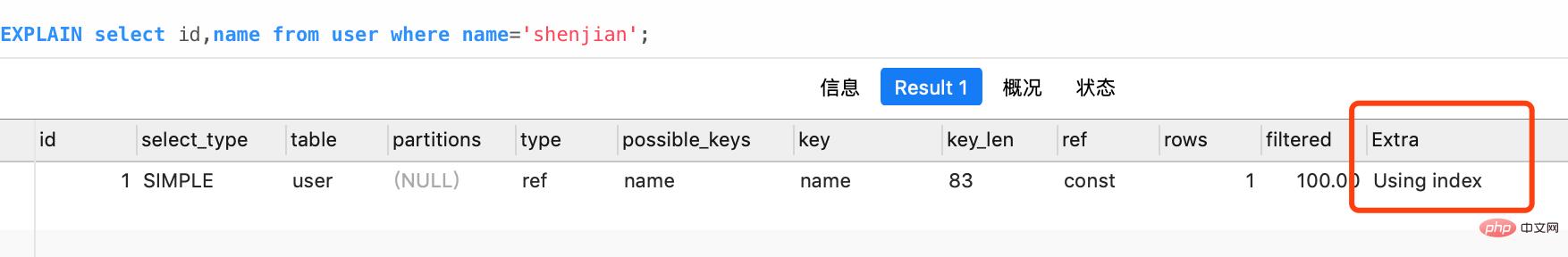 原表为:user(PK id, name, sex);不能利用索引覆盖