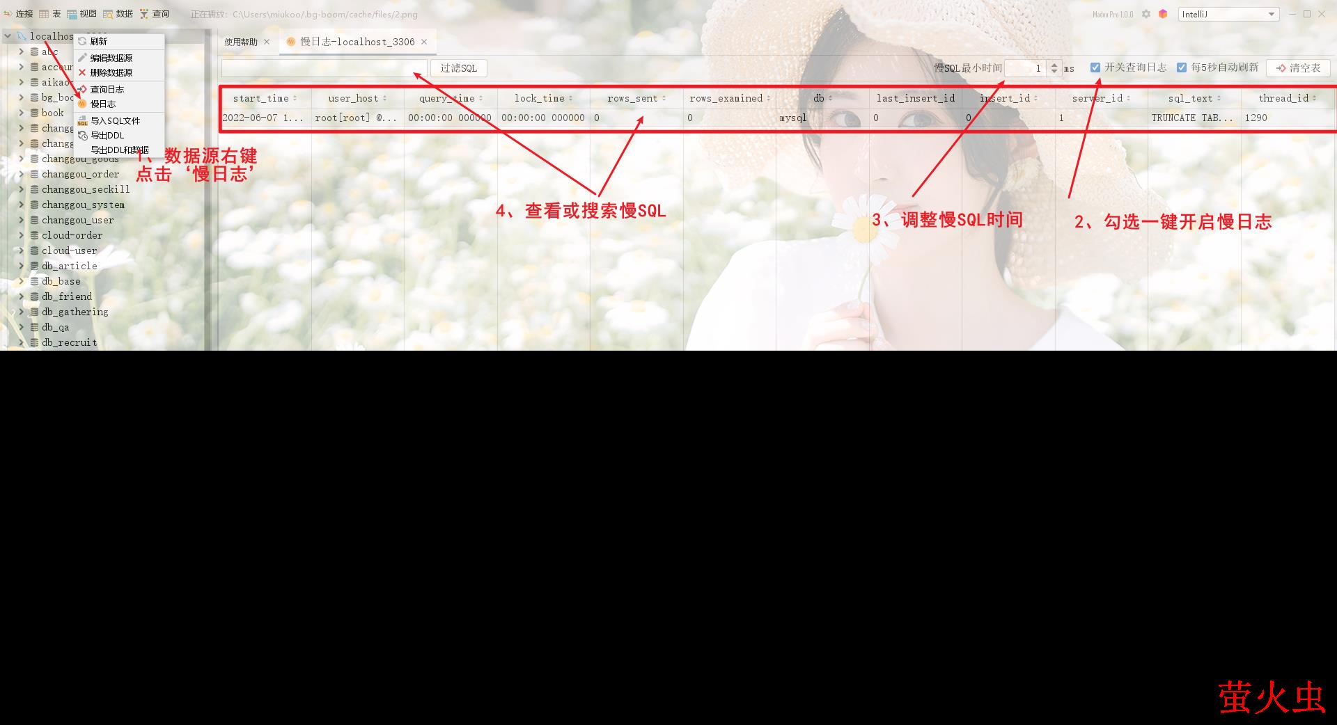首先在开发过程中也需要开启数据库Mysql的慢查询