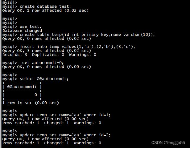 mysql> update temp set name='bb' where id=1; #执行这条sql,会一直卡住。4.登录MySQL,打开第三个session。