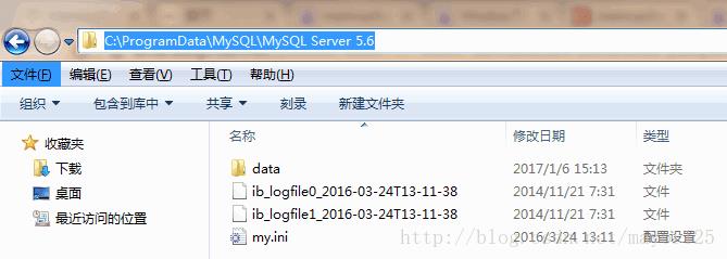或者直接将ProgramData/MySQL/MySQL Server 5.6目录复制下来直接粘贴到文件夹的目录窗口中也可以。