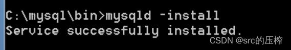2、运行mysqld –install mysql,显示安装成功(目录为自己对应解压的mysql文件bin目录下)