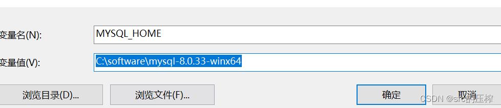 (2)点击新建按钮,变量名填:MYSQL_HOME ,标量值填:解压MySQL的路径
