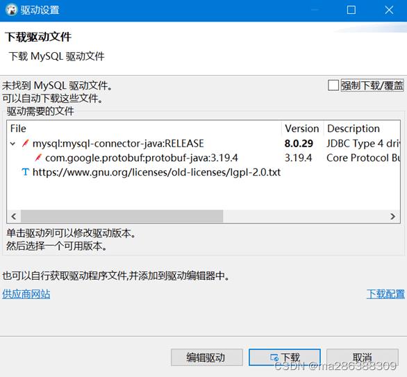 3、如果首次连接mysql数据库会提示下载对应的jdbc驱动,如下图点击下载即可。