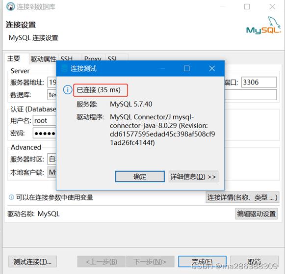 4、下载完驱动后,再次点击连接测试,看下图提示已经连接上了mysql数据库。
