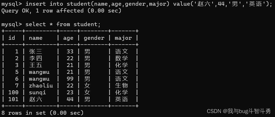 此时再次添加数据并查询所有数据,发现主键id居然依旧从100开始继续增长