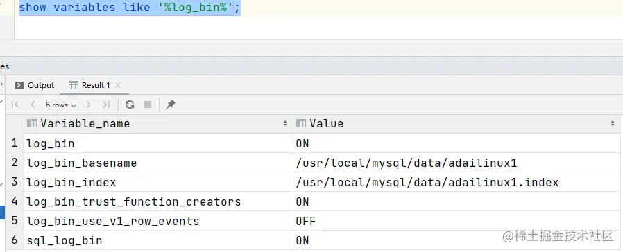 可以通过命令show variables like '%log_bin%';查看bin log最终输出的位置。