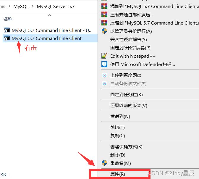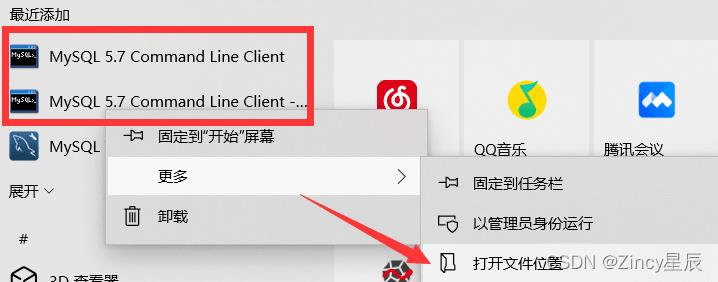 1)首先在开始菜单找到MySQL客户端的快捷方式,右击打开文件位置。