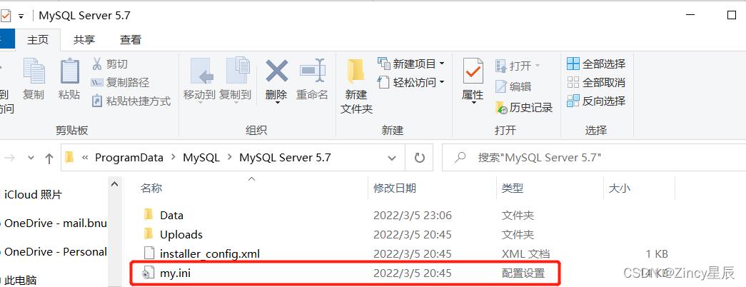 C:\ProgramData\MySQL\MySQL Server 5.7\my.ini 这个文件就是我们要找的配置文件.