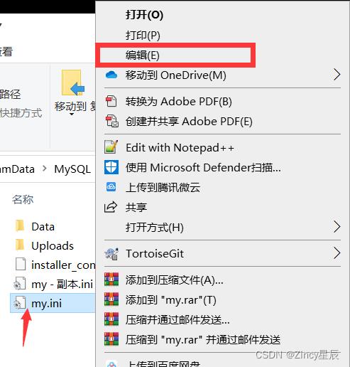 (由于my.ini 一旦改错可能会导致 mysql 不能正常使用,因此修改之前必须要先备份!!!)