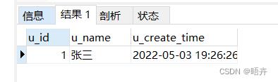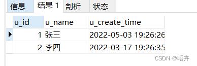 select * from u_user where u_create_time > DATE_SUB(NOW(),INTERVAL 1 YEAR);结果: